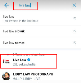 Tweets from Live Law will be displayed. (If you are seeing promotional material from their website instead of the Tweets screen below, please press the LiveLaw icon (in a small circle)).